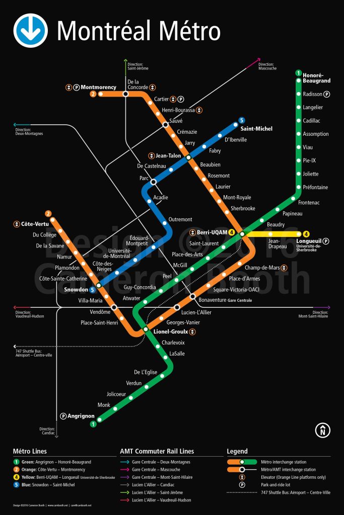 So if you park your car at Longueuil, you simply need to take the yellow line from beginning to end (Berri-UQAM) :).