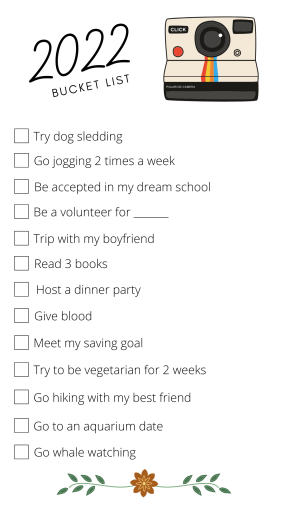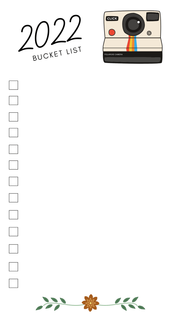 So let’s start with the Bucket List. If you’ve been following my blog for a while, you know that I absolutely love bucket lists. If for 2022, your goal is to make new memories, try new things and live experiences, a bucket list is the template that I suggest you to use.