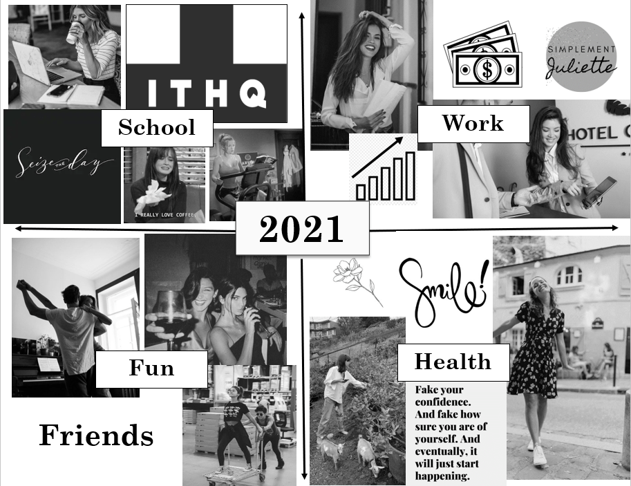 Then, you identify what you want this specific area of your life to look like in 2022 with the help of pictures (see my example of 2021). I like to use images from Pinterest in order to create something “aesthetically pleasing”.