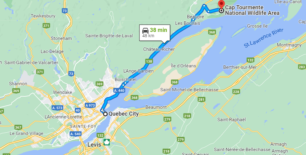 Cap-Tourmente is located near Saint-Joachim, a few kilometers away from the renowned Basilica of Sainte-Anne-de-Beaupré. The Cap Tourmente National Wildlife Area is a protected site by Environment and Climate Change Canada.
