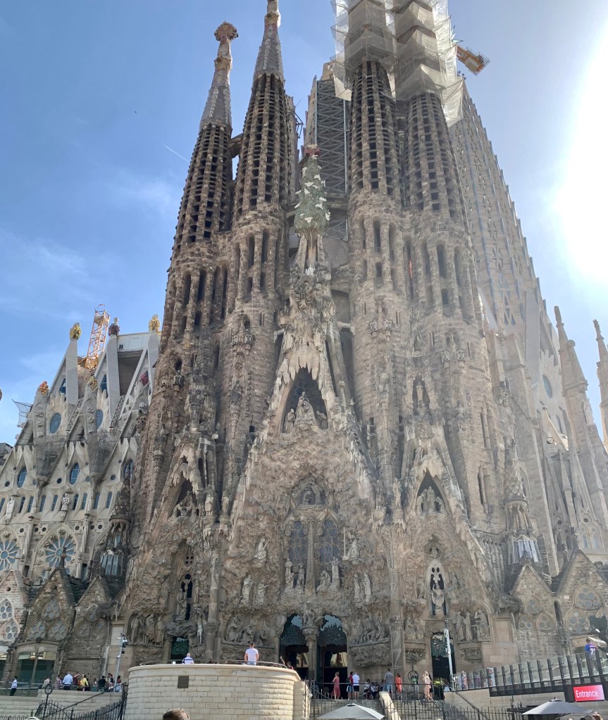 La Sagrada Familia has two distinct sides. One side is called the Nativity facade, with gothic architecture, and the other is called the Passion facade, which is brighter and looks like a sand castle! What also makes this church so unique is that it is still incomplete! There is still a construction site with a tower crane. The construction started in 1882!