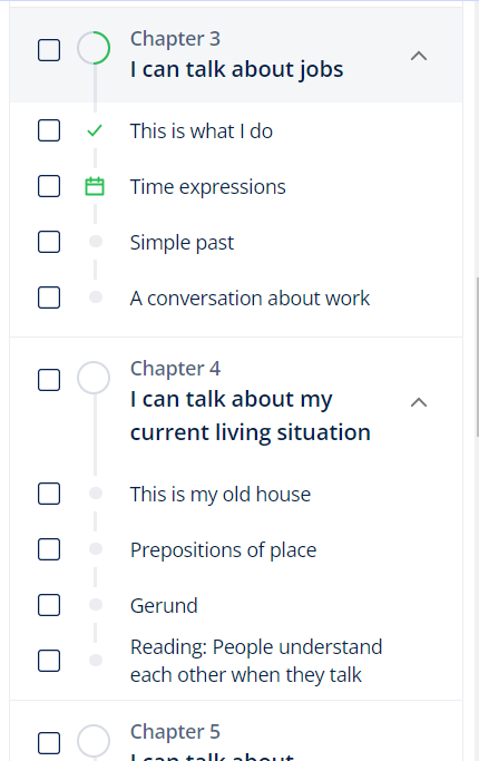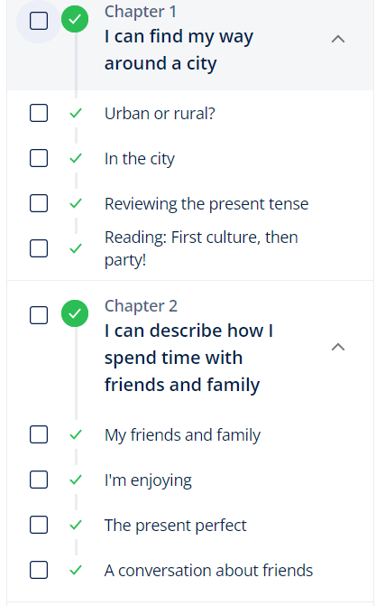 Each level has 50 classes, divided into various chapters and themes. At the end of your level, you get a CEFR certificate, which refers to the Common European Framework of Reference for Languages. It is a standard recognized internationally and used in many language schools. To learn more about CEFR, click here.