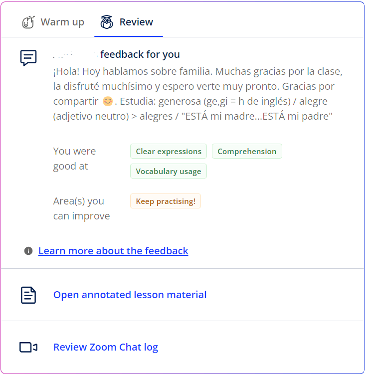 I think it is a pretty reasonable price since classes are with experienced native-level teachers, and you receive personal feedback after every lesson. You also get the annotated PDFs from your teachers and have access to a self-study area where you can review the vocabulary you have seen during classes and study with some Chapter Flashcards.